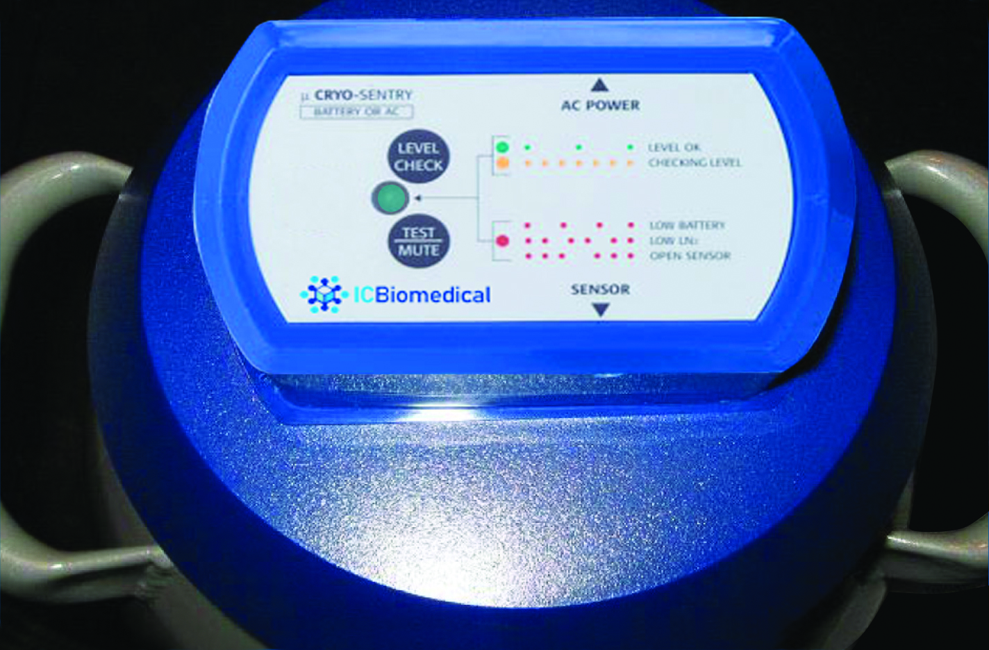 The Cryo-Sentry alarm system provides critical temperature monitoring for cryo containers and LN2 freezers. Cryo-Sentry provides visual and audible alarms when the liquid nitrogen level drops below a preset level – usually 25 percent of the container’s capacity. This monitoring system provides a high level of security by alerting the user to low nitrogen levels and acting as a reminder to schedule refills. Our liquid nitrogen level sensor technology delivers 24/7 monitoring with instant alerts, protecting valuable biological samples and research materials from temperature excursions and nitrogen depletion.