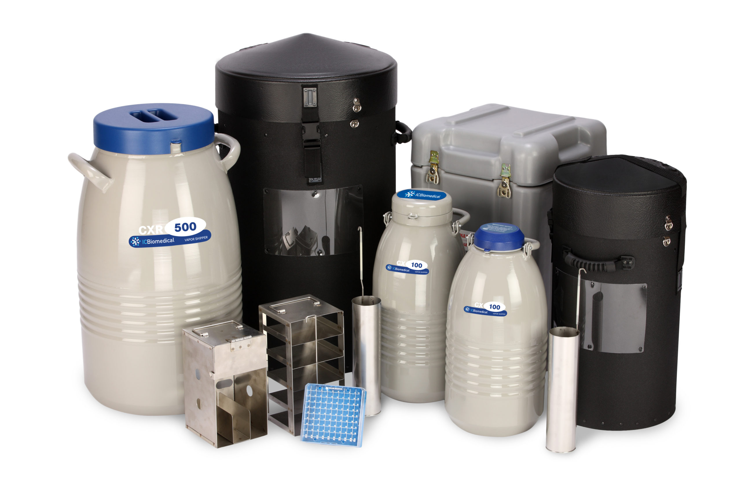 IC Biomedical offers two types of liquid nitrogen shipping containers. D SERIES utilizes a Hydrophobic Adsorbent material that’s easier to clean if the vessel gets contaminated, while the CX SERIES uses an Advanced Concept Adsorbent that enables faster charging. All shippers comply with IATA regulations for open cryogenic receptacles.
